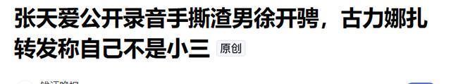 钱江晚报——张天爱公开录音手撕渣男徐开骋,古力娜扎转发称自己不是小三
